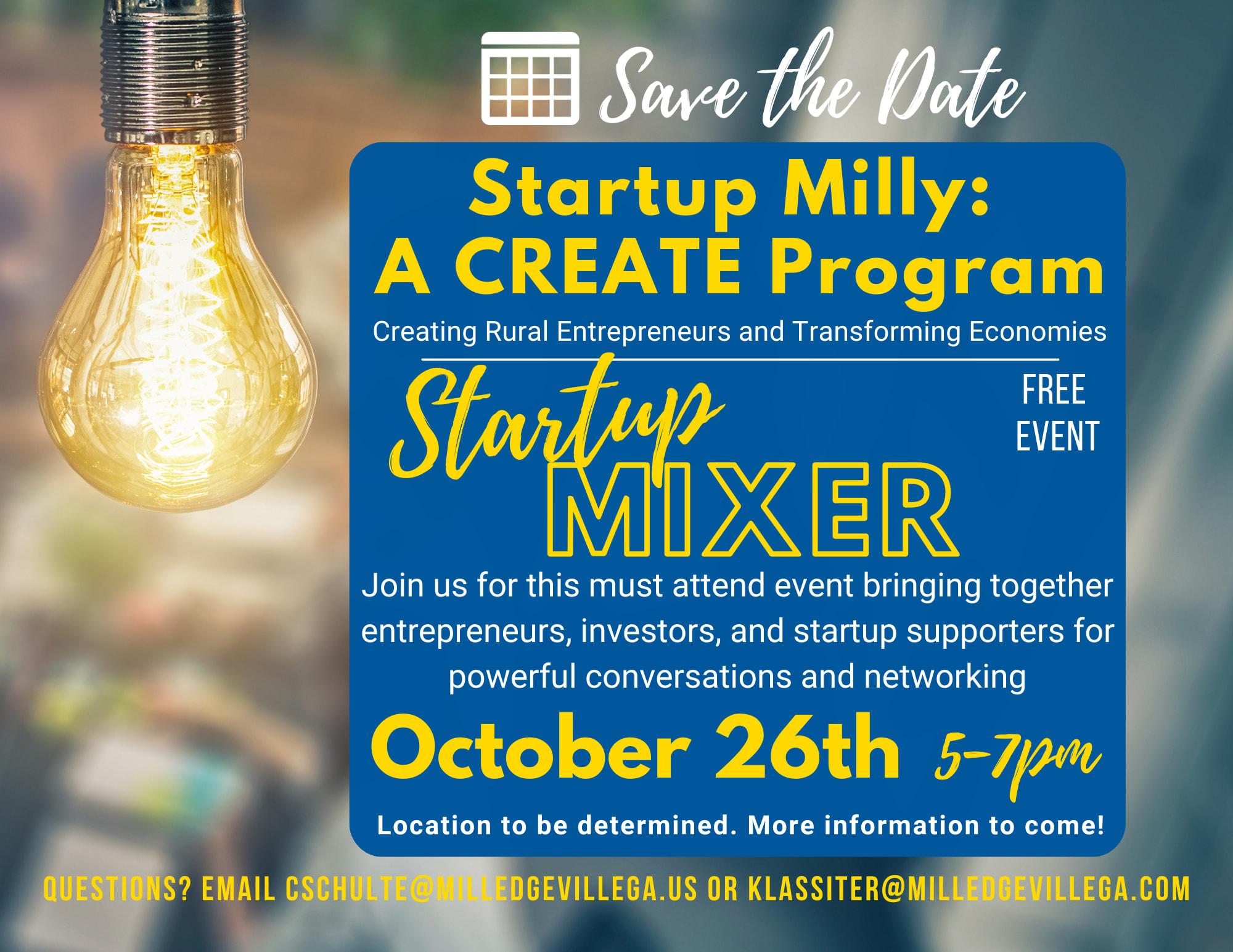 In addition to the incredible networking, the event will feature tasty treats from local entrepreneurs and refreshing beverages. The "Startup Mixer" is free to attend! Startup Milly: A CREATE Program is committed to promoting entrepreneurship and supporting the startup community, and we believe that access to valuable networking opportunities should be available to all.